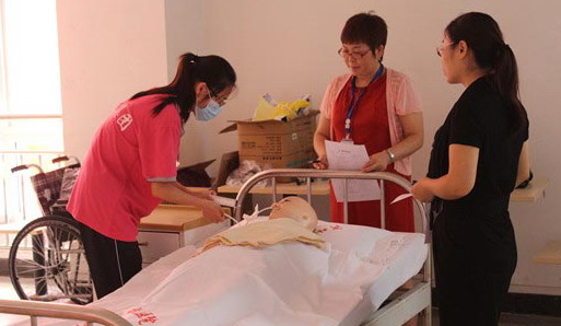 河北省首屆家政服務(wù)技能大賽養(yǎng)老護(hù)理員比賽現(xiàn)場(chǎng)。