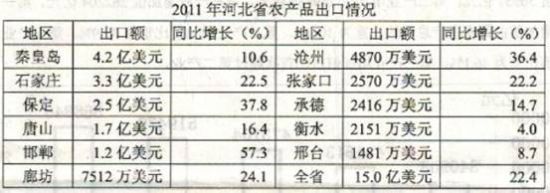 C。雖然到日本大地震的影響,2011年河北省農(nóng)產(chǎn)品對日本的出口貿(mào)易額還是保持了正增長