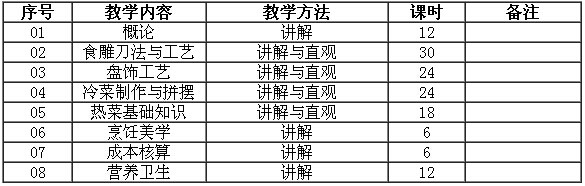 1.食雕制作:10個(gè)品種(78課時(shí))