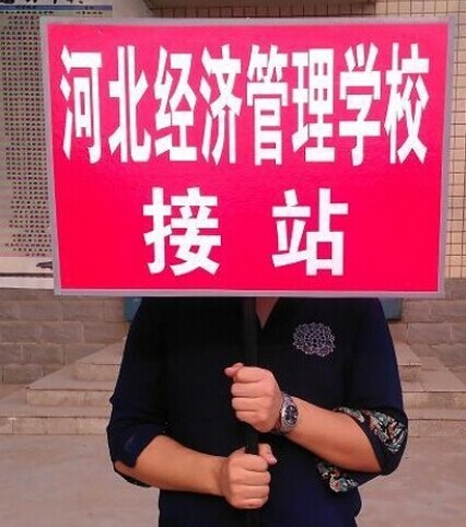8月18日新生報到,河北經(jīng)濟管理學(xué)校將在各長途客運站設(shè)立接站點,從早上7點開始,各接站老師和學(xué)長將各就各位,請跟我走!上圖是接站牌子,保證貨真價實!看到這個牌子就找對地方啦!