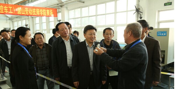 各位領(lǐng)導(dǎo)首先察看了數(shù)控技能大賽比賽現(xiàn)場(chǎng),并參觀了學(xué)院焊接和化工實(shí)訓(xùn)車間。隨后在學(xué)院信息樓二樓監(jiān)控中心會(huì)議室召開會(huì)議,聽取市人社局畢開艾局長關(guān)于唐山市職業(yè)技能公共實(shí)訓(xùn)中心建設(shè)情況的匯報(bào)。省領(lǐng)導(dǎo)和與會(huì)領(lǐng)導(dǎo)就公共實(shí)訓(xùn)中心建設(shè)等方面交換意見,對(duì)唐山勞動(dòng)技師學(xué)院未來建設(shè)發(fā)展、技能教學(xué)及繼續(xù)保持學(xué)生高質(zhì)量、高就業(yè)率等方面給予了寶貴意見。