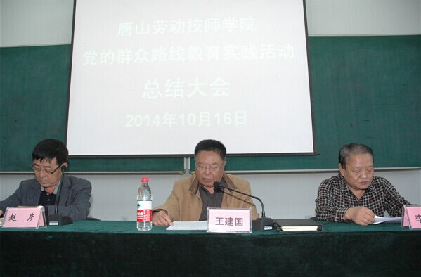10月16日下午,唐山勞動技師學院在多媒體報告廳召開黨的群眾路線教育實踐活動總結大會。市委教育實踐活動第21督導組組長王建國及督導組成員蒞臨會議,學院領導班子成員、中層干部、部分教職工參加了會議。第21督導組組長王建國做了重要講話,學院黨委書記李憲章同志做活動總結,會議由副院長趙彥主持。