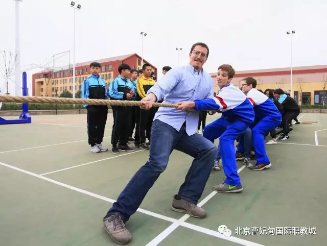 下課后,交流生們來到操場,看見實驗中專的同學們正組織拔河、丟沙包比賽。他們很快就被現(xiàn)場熱烈的氣氛所感染,迫不及待的要和中國的學生一起參加體育活動。