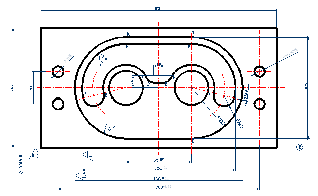 四、編制出圖中(見附圖)C面及該面上所有加工部位的程序。(本題20分)