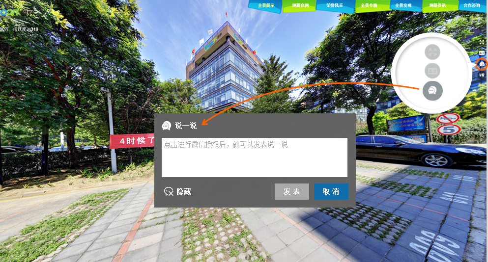 說一說功能、微信分享等互動(dòng)方式,增加全景的娛樂性。