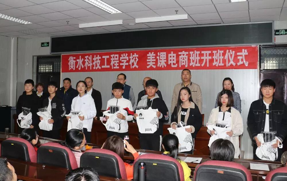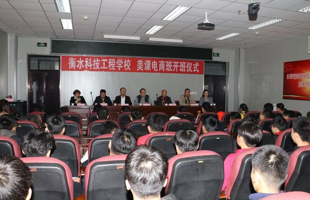2018年10月16日上午, 衡水科技工程學(xué)校與美課創(chuàng)鑫(北京)教育科技有限公司合作共辦的美課電商精英班開(kāi)班儀式隆重舉行。美課創(chuàng)鑫公司總經(jīng)理高博,菜鳥(niǎo)產(chǎn)業(yè)園基地經(jīng)理聶輝,美課創(chuàng)鑫副總經(jīng)理黎勝、學(xué)術(shù)主管江山出席,我校副校長(zhǎng)李洪武、校企合作處副主任李志霞、財(cái)經(jīng)商貿(mào)系屈廣輝主任、主管電子商務(wù)專(zhuān)業(yè)實(shí)習(xí)就業(yè)的徐云峰主任、財(cái)經(jīng)系系副主任徐俊芒、美課電商班部分專(zhuān)業(yè)課教師以及全體學(xué)生參加了開(kāi)班儀式。開(kāi)班儀式由學(xué)校財(cái)經(jīng)商貿(mào)系副主任徐俊芒主持。