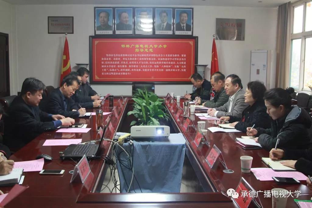 為了學(xué)習(xí)和借鑒先進(jìn)辦學(xué)經(jīng)驗(yàn),進(jìn)一步推進(jìn)承德廣播電視大學(xué)城市大學(xué)建設(shè),2018年12月1日,承德市人大副主任、承德廣播電視大學(xué)校長(zhǎng)孔慶龍率領(lǐng)副校長(zhǎng)張桂春及承德廣播電視大學(xué)相關(guān)部門人員一行9人赴邯鄲電大進(jìn)行考察學(xué)習(xí)。