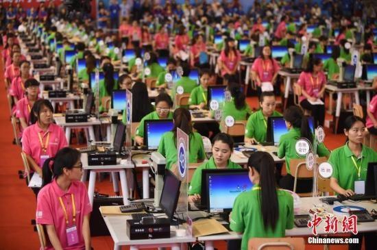 資料圖:全國職業(yè)院校技能高職組會計技能比賽現(xiàn)場。 武俊杰 攝