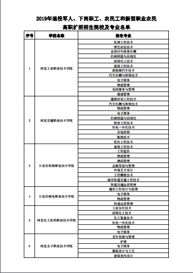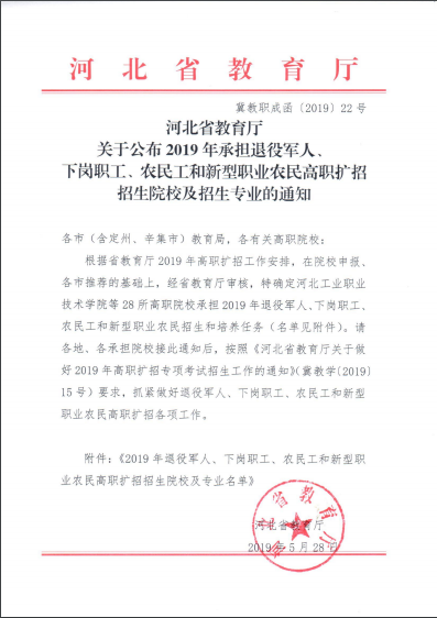 日前,河北省正式啟動實施高職擴招專項工作。河北此次高職擴招報名分兩個階段,5月27日至29日為第一階段,招生對象為符合全省今年普通高考報名條件的普通高中畢業(yè)生、中職(含中專、技工學校、職業(yè)高中)畢業(yè)生、退役軍人、下崗失業(yè)人員、農(nóng)民工和新型職業(yè)農(nóng)民。第二階段報名工作將于10月底前完成,報名對象為符合河北省高考報名條件的2019年度退役的軍人。