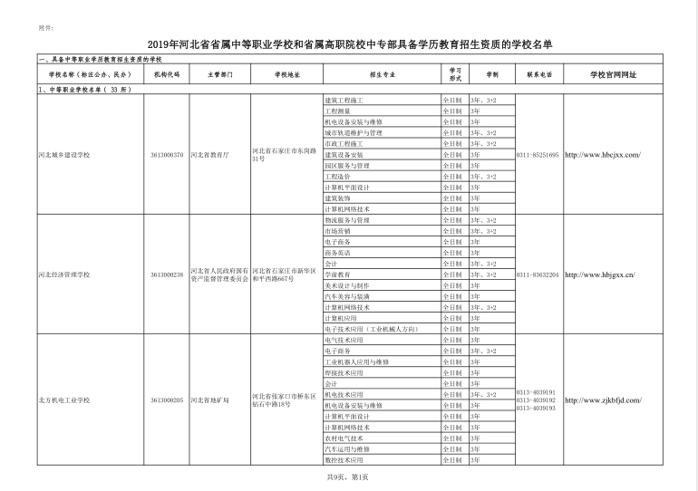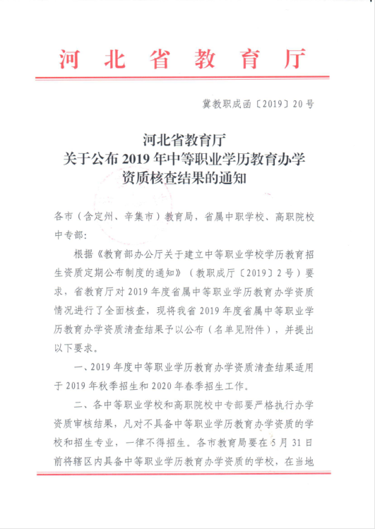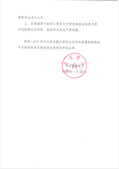 附件:2019年河北省省屬中等職業(yè)學(xué)校和省屬高職院校中專(zhuān)部具備學(xué)歷教育招生資質(zhì)的學(xué)校名單