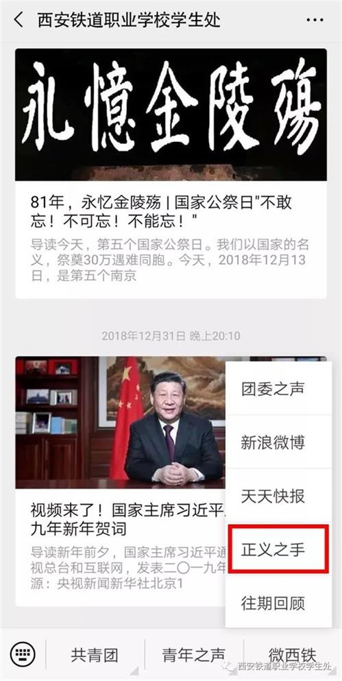 另外西安鐵道職業(yè)學(xué)校學(xué)生處公眾號上有“正義之手”投訴、求助板塊,當(dāng)看到其他同學(xué)吵架、發(fā)生矛盾時,任何人可以及時在正義之手發(fā)布,老師也能夠第一時間趕到現(xiàn)場處理。當(dāng)自己認(rèn)為老師對自己有不公正的待遇時,同學(xué)和老師有矛盾,應(yīng)當(dāng)及時找年級主任匯報情況,或可以給專門郵箱發(fā)送訴求,由校領(lǐng)導(dǎo)處理解決。