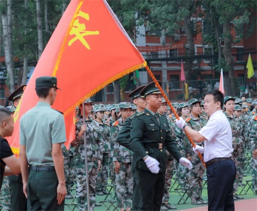 集團(tuán)總裁許士明先生向軍訓(xùn)團(tuán)授軍訓(xùn)團(tuán)團(tuán)旗