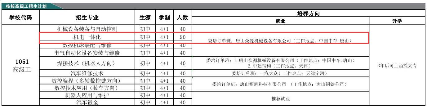 唐山勞動(dòng)技師學(xué)院機(jī)電一體化專(zhuān)業(yè)定向委培合作企業(yè)