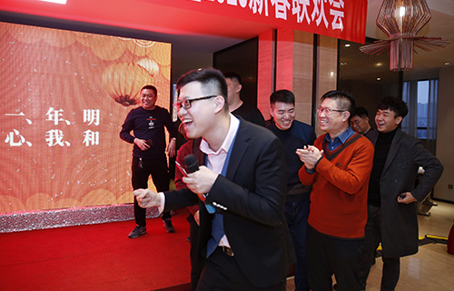 年會(huì)的聯(lián)歡部分就在最后全體演唱的《相親相愛(ài)》歌聲中結(jié)束,之后大家一起進(jìn)行了晚宴活動(dòng)。