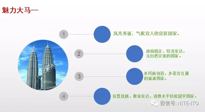 4、宜居:翡翠天堂,魅力大馬,讓人羨慕的學(xué)習(xí)居住環(huán)境,棒極了!優(yōu)越環(huán)境、穩(wěn)定政治、低廉消費(fèi)、完善醫(yī)療、燦爛人文、和諧社會(huì)是馬來(lái)西亞的代名詞,也是促使越來(lái)越多的人在馬來(lái)西亞留學(xué)定居的原因所在。這里全年氣溫基本維持在21°C至31°C之間,沒(méi)有地震、臺(tái)風(fēng)、干旱等自然災(zāi)害,馬來(lái)西亞連續(xù)多年被評(píng)為“福布斯全球十佳華人移居國(guó)”等。PM2.5 均值6-13 (海南?谑25.6 ,北京90.1 )。