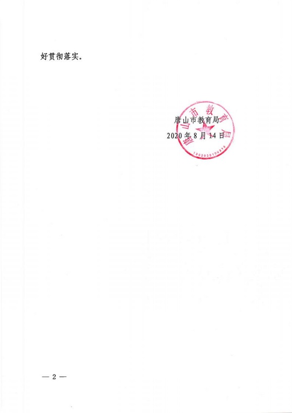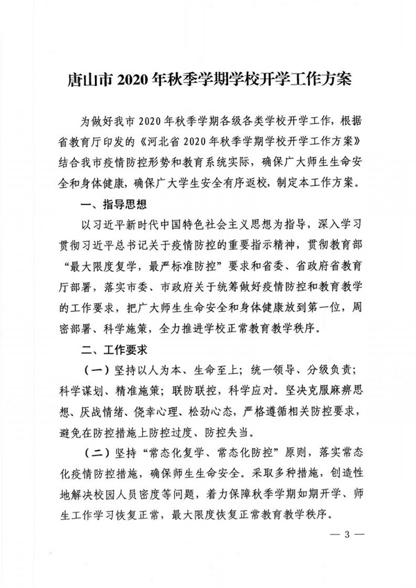 唐山市教育局印發(fā)唐山市2020年秋季學期學校開學工作方案的通知