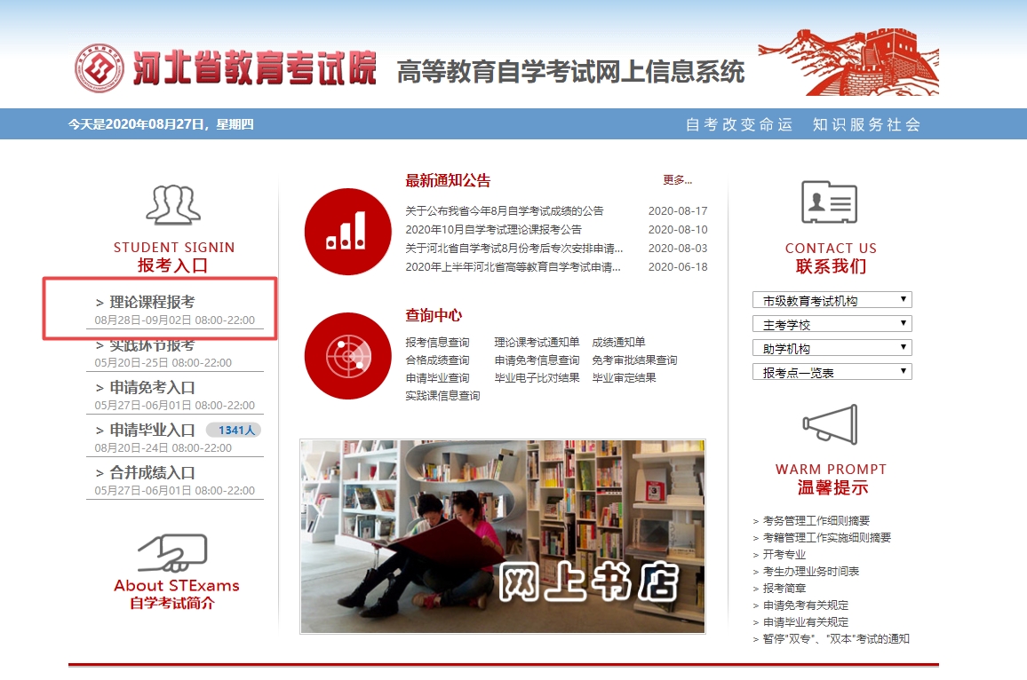 10月份自考理論課程報(bào)考時(shí)間:08月28日-09月02日 08:00-22:00