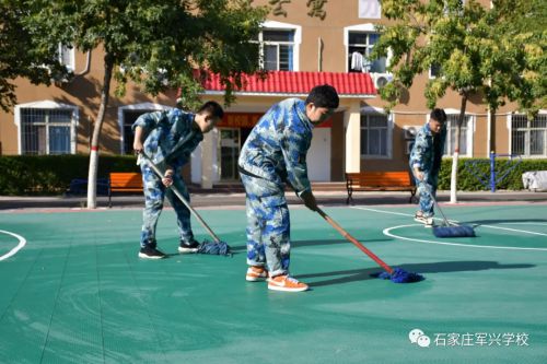 賽前校團委組織學生進行籃球場擦拭,保證地面干凈。同時教官對參賽選手進行最后的指導。