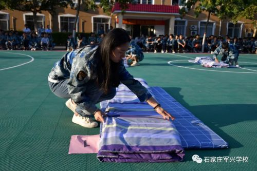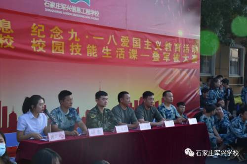 為提升同學們國防教育水平,強化石家莊軍興信息工程學校軍事化管理辦學特色,9月18日下午,我校特組織了“紀念九一八”疊軍被大賽活動,出席本次大賽的評委皆由部隊退役軍人的學校中高層領導及優(yōu)秀軍訓教師組成。
