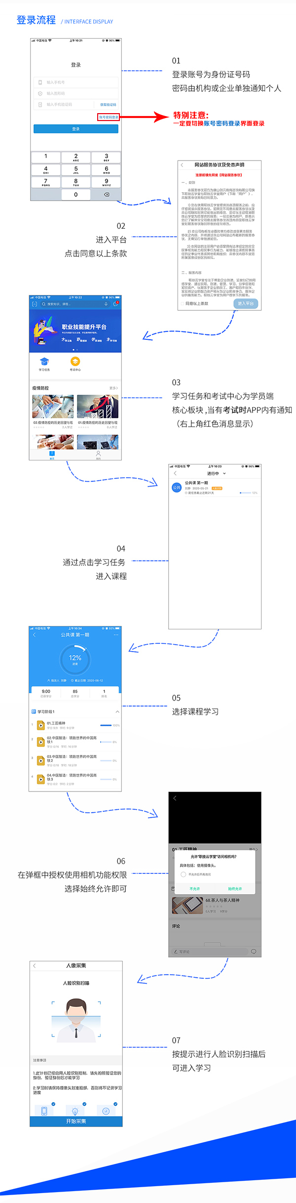 職技云學(xué)堂APP如何登陸?首先,大家需要先下載好這一在線職業(yè)技能提升平臺開發(fā)的APP,下載好之后設(shè)置好相應(yīng)的權(quán)限,具體下載教程: (如何下載職技云學(xué)堂APP?) 點(diǎn)擊藍(lán)色鏈接或可關(guān)注“職技云學(xué)堂”公眾號回復(fù)下載即可觀看下載教程視頻,那么接下來言歸正傳,大家下載好APP后如何登錄呢?登錄流程如下: