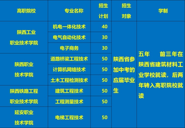 陜西省建筑材料工業(yè)學(xué)校高職(聯(lián)辦3+2)招生計(jì)劃