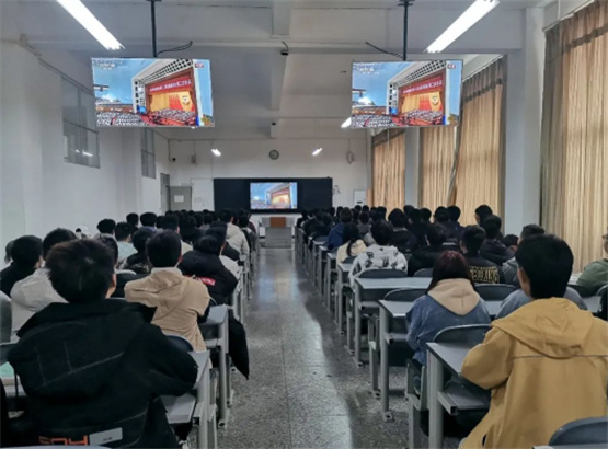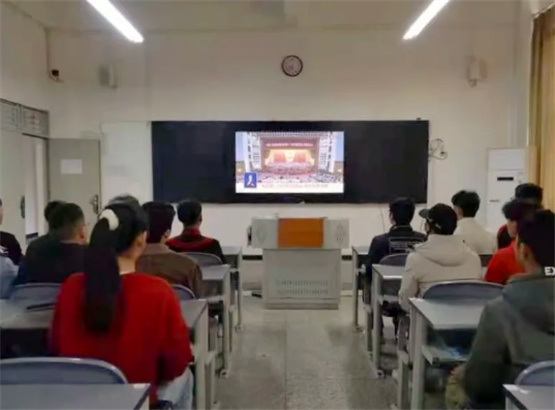 學校干事、教師觀看政協(xié)第十三屆全國委員會第四次會議現(xiàn)場直播。