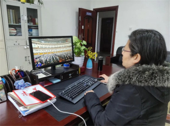 學校紀檢監(jiān)督處處長、第一黨支部書記吳芳觀看政協(xié)第十三屆全國委員會第四次會議現(xiàn)場直播。