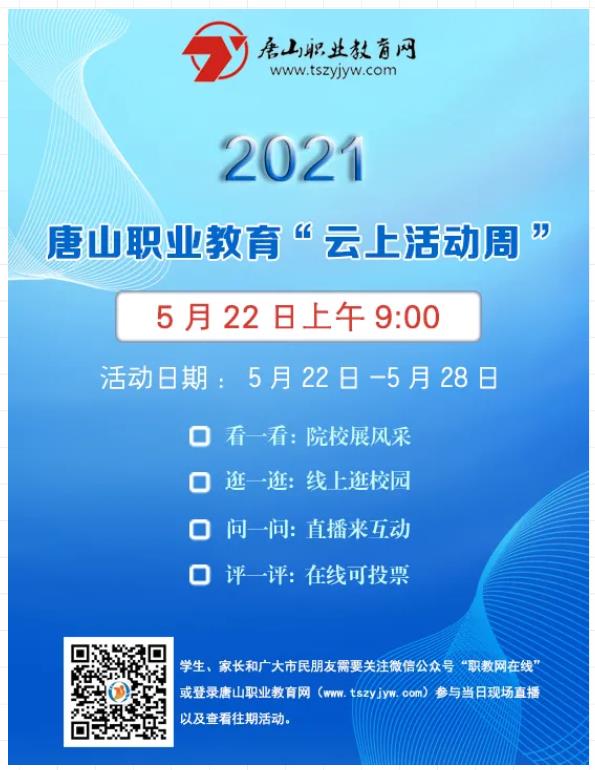 為讓更多家長與學(xué)生能夠真正了解職業(yè)教育的深刻含義,感受職業(yè)教育發(fā)展帶給我們的諸多便利;多層次、多角度了解職業(yè)學(xué)校辦學(xué)、建設(shè)情況,唐山市教育局等九部門協(xié)同組織開展2021年唐山職業(yè)教育“云上活動周”活動,將于5月22日上午9:00正式啟動!