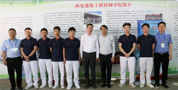啟動儀式結(jié)束后,省人社廳副廳長井海濱同志及省教育廳副廳長朱曉渭同志來到西安建筑工程技師學(xué)院展板前與國家隊(duì)選手親密合影。省廳領(lǐng)導(dǎo)對學(xué)校參展師生表示親切慰問并對西安建筑工程技師學(xué)院取得的成績給予充分肯定。