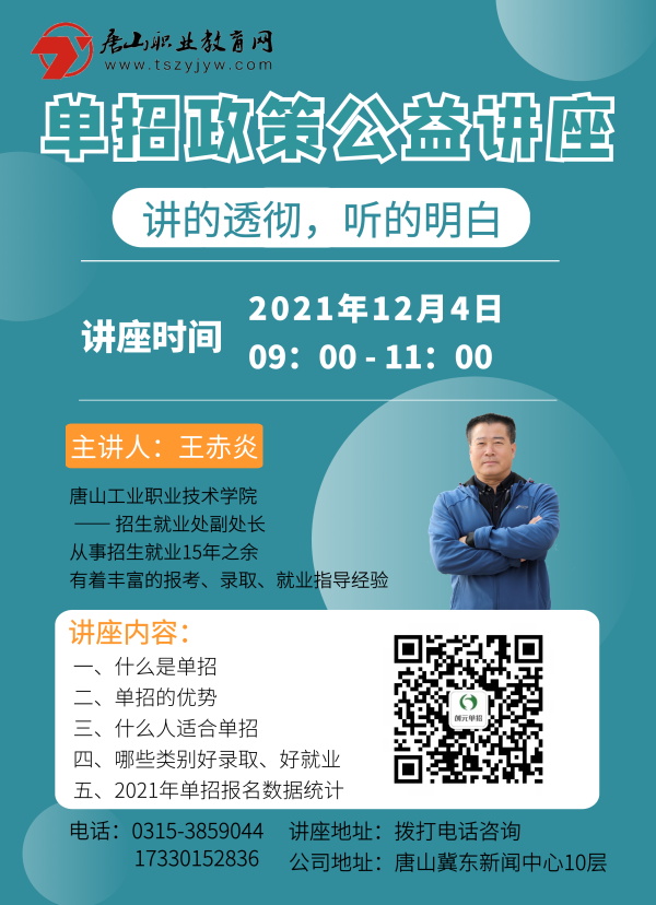 唐山職業(yè)教育網(wǎng)2022年河北·唐山單招政策解讀公益講座(玉田專(zhuān)場(chǎng))在緊鑼密鼓籌備中,請(qǐng)持續(xù)關(guān)注我們,想要參加講座請(qǐng)【撥打電話(huà)】【添加微信】預(yù)約名額!