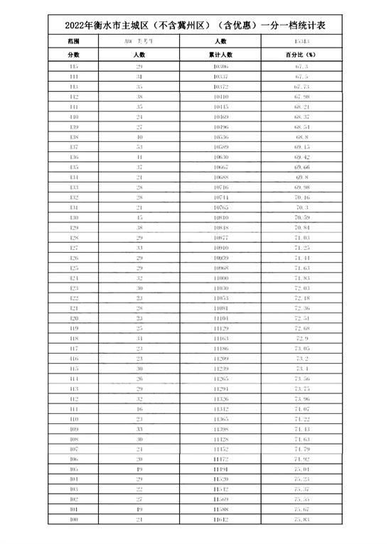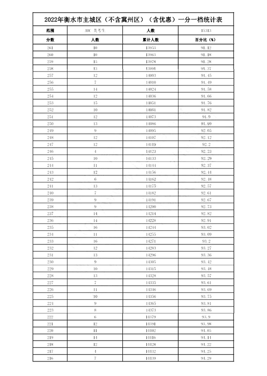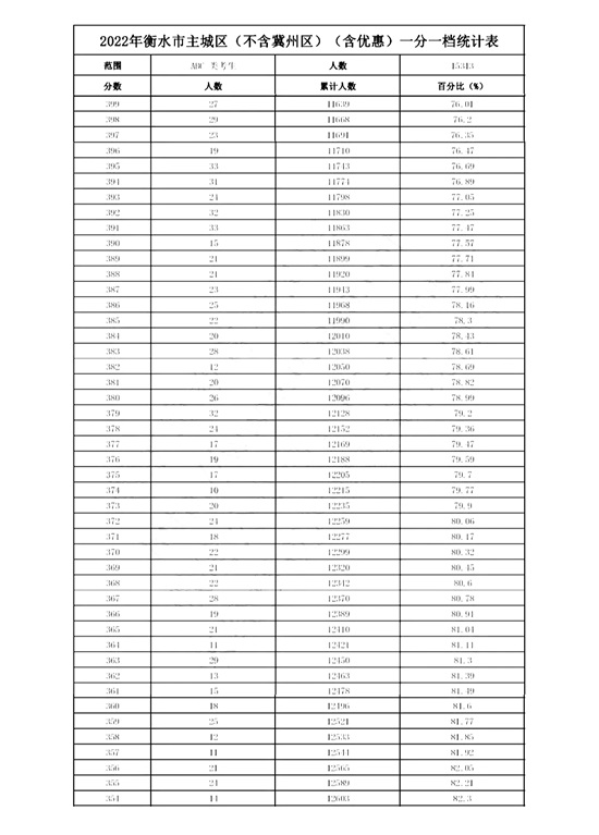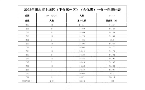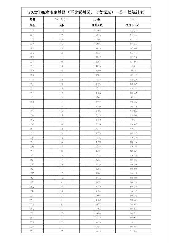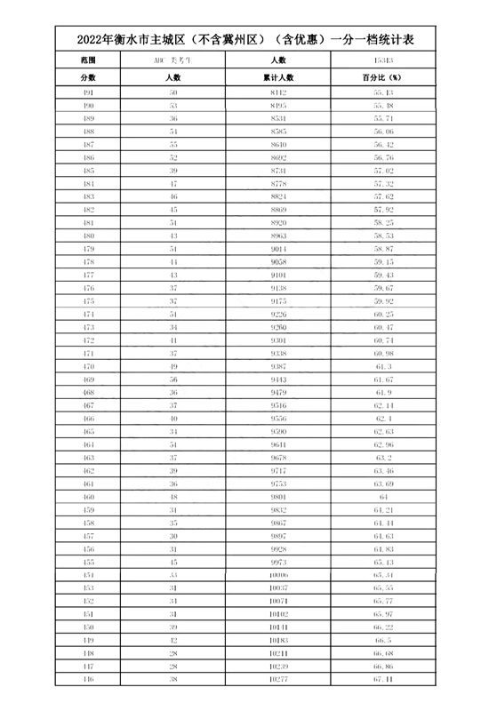 2022年衡水市主城區(qū)(含優(yōu)惠)一分一檔統(tǒng)計表(不含冀州區(qū))