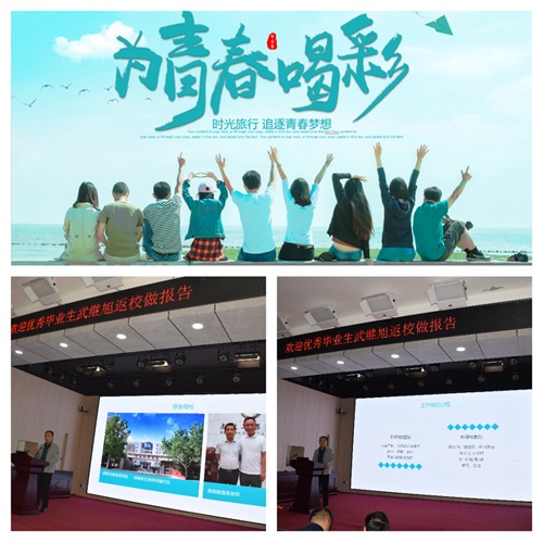 報告會上,武繼旭結合自己求學時的學習經歷,畢業(yè)后踏入社會奮斗的心路歷程,給學弟學妹們分享了學習、做人、做事、奮斗的經過,從專業(yè)學習、人生規(guī)劃、職業(yè)發(fā)展等方面對學弟學妹們提出中懇的建議,為他們畢業(yè)后就業(yè)創(chuàng)業(yè)道路上可能面對的問題及如何解決指明方向。在“校友互動”環(huán)節(jié),與會學生踴躍提問,武繼旭耐心回答,殷切囑托同學們,要牢固樹立“技能改變命運”“越努力越幸運”人生信條。報告會現場氣氛熱烈,不時爆發(fā)出陣陣掌聲。