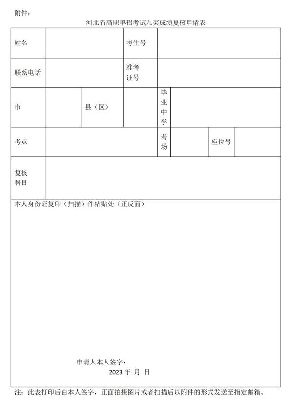 考生如對本人成績有異議,可于4月14日17時前將書面復核申請表(附件)及準考證拍照或掃描后以附件的形式發(fā)送至電子郵箱(qinduidui@foxmail.com),郵件標題為“姓名+復核申請”,也可本人持準考證、身份證到河北對外經(jīng)貿(mào)職業(yè)學院當面提交申請。逾期不再受理。