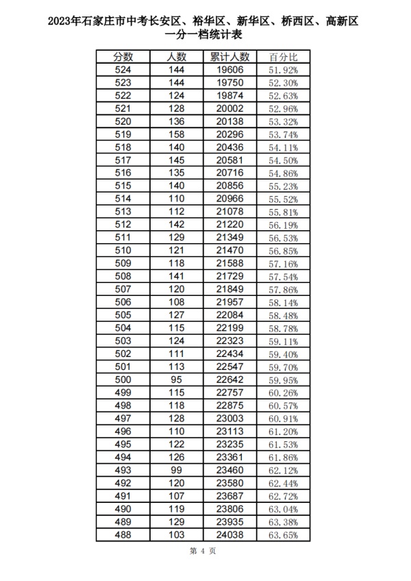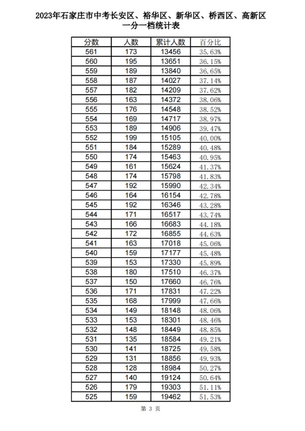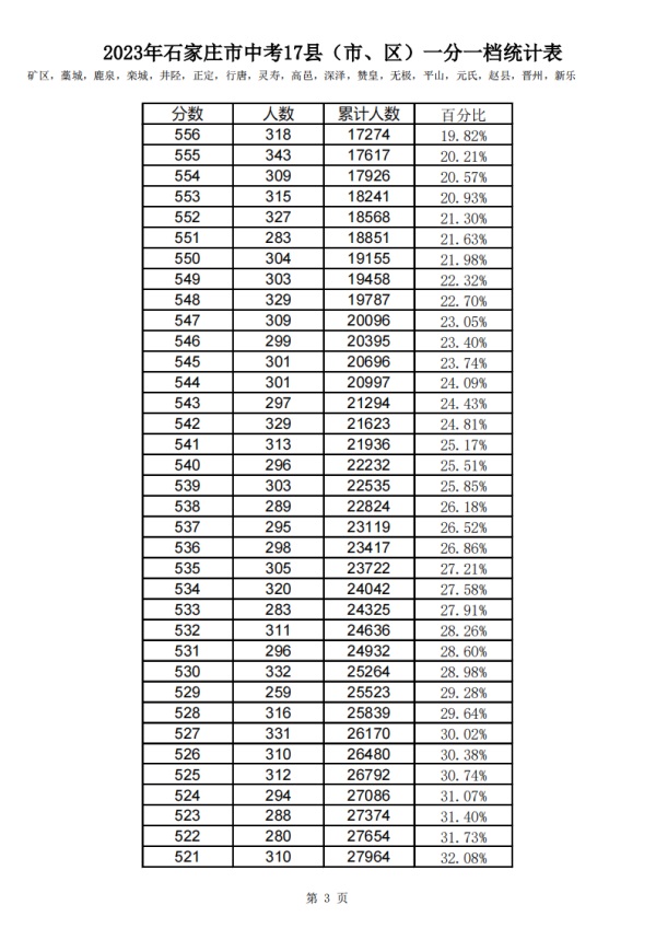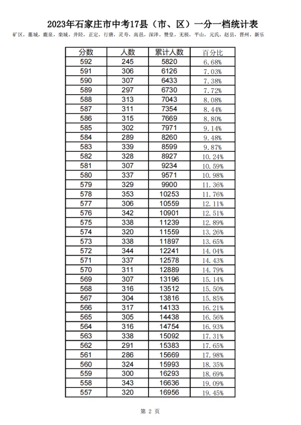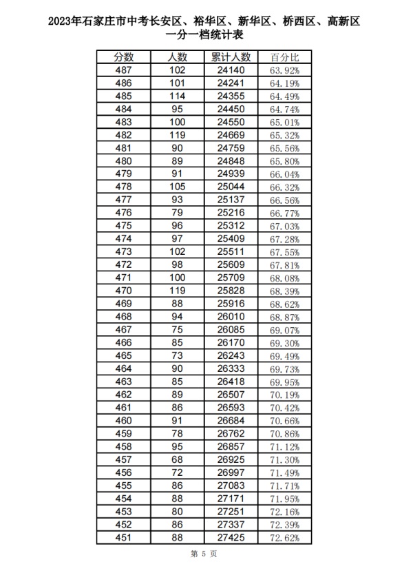 石家莊2023中考一分一檔表公布!