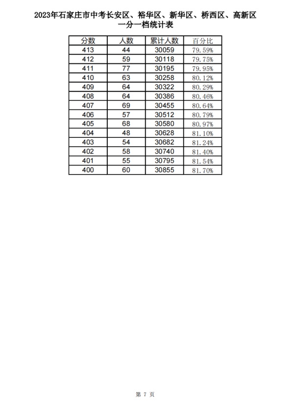·石家莊2023中考一分一檔表公布!