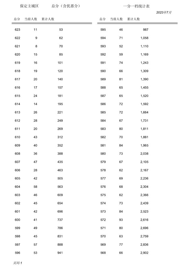 您的位置:河北技校網(wǎng)>> 焦點(diǎn)新聞 >>2023年保定市及保定市主城區(qū)中考(含優(yōu)惠分,不含雄安新區(qū))一分一檔統(tǒng)計(jì)表