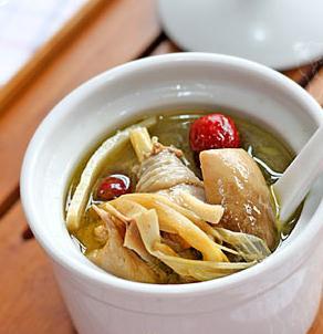 原料:土雞、野山菌、野山筍、干黃花、干紅棗、生姜、色拉油、鹽、雞精、胡椒。