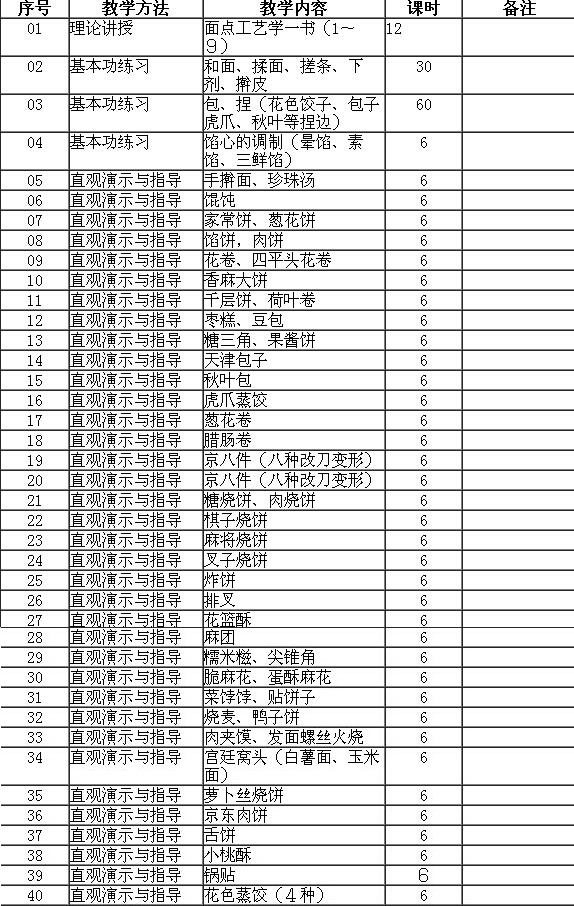 一、培訓(xùn)目的:讓學(xué)員了解中式面點的基本制作工藝,學(xué)會50個品種的中式面點新產(chǎn)品的制作方法,并能制作一般意義上的大眾化主食品種,達到中級工水平。