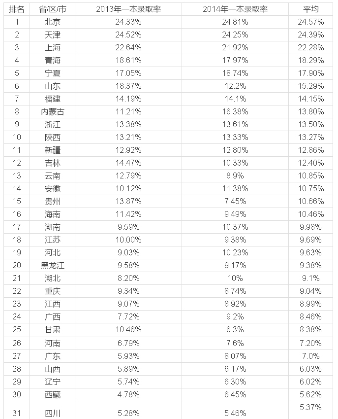 高考志愿填報(bào)一本的同學(xué)們注意啦!小編為大家整理了2013年和2014年各省份高考一本錄取率,希望大家可以在2015年做個(gè)參考!