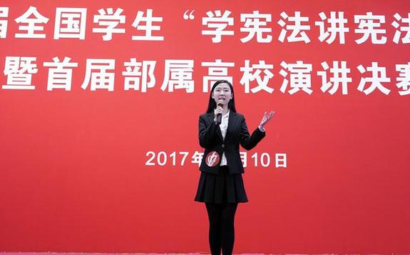 來自天津代表隊高校組的朱培鑫,新疆生產(chǎn)建設(shè)兵團代表隊初中組的艾克旦·帕拉提,山東代表隊小學組的王柯心,北京代表隊的丁灝、董婉怡、郝躍凡、殷媛分別進行了展演,講述了自己的憲法故事。
