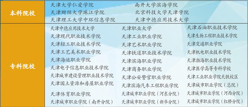 天津市作為全國職業(yè)教育改革創(chuàng)新示范區(qū),設(shè)有專門面向中職應(yīng)屆畢業(yè)生的普通高校招生統(tǒng)一考試,以滿足中職學(xué)生繼續(xù)深造的愿望?荚嚂r(shí)間為每年3月下旬,采取“文化基礎(chǔ)+職業(yè)技能”的評價(jià)形式。志愿院校均為天津市高等院校,錄取后和參加秋季高考的學(xué)生一同開學(xué),實(shí)行混合編班,在高校學(xué)習(xí)期間和畢業(yè)后的待遇完全相同,學(xué)生畢業(yè)后頒發(fā)國家統(tǒng)招全日制畢業(yè)證書。
