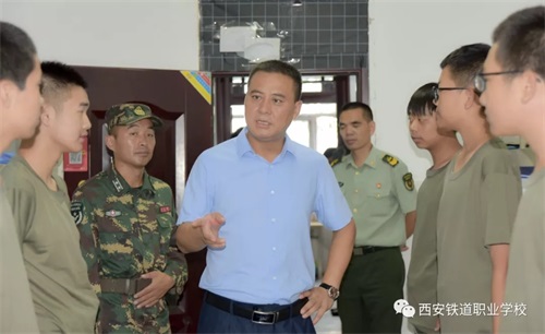 在西安鐵道職業(yè)學(xué)校迎來了2019級新生后,為了解學(xué)校學(xué)生住宿和生活情況,8月21日上午9點(diǎn),校長劉愛民、學(xué)生處處長程勇、軍訓(xùn)團(tuán)團(tuán)長孫鳳輝等人一行,走入新生所在的宿舍,親切慰問全體參訓(xùn)學(xué)生。