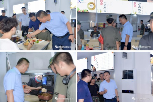 劉校長一行來到食堂了解學(xué)生就餐情況。校長仔細(xì)查看食堂每個售飯窗口的飯菜質(zhì)量、花色品種,詢問了飯菜價格,與前來就餐的同學(xué)進(jìn)行親切交談,劉校長告訴同學(xué)們在軍訓(xùn)期間最好是少吃一些太咸以及太辣的食物,多吃一些水果以及蔬菜,三餐合理安排早餐和午餐一定要吃飽,到了晚餐時間,由于體力上的消耗沒有白天那么多,晚餐一定要節(jié)制。