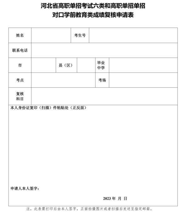 考生如對本人成績有異議,可于4月15日11時前本人持準(zhǔn)考證、身份證到河北女子職業(yè)技術(shù)學(xué)院當(dāng)面提交申請(成績復(fù)核申請表見附件),也可將書面成績復(fù)核申請表及準(zhǔn)考證拍照或掃描后發(fā)送至電子郵箱(hebeinvyuan@126.com),郵件標(biāo)題為“姓名+復(fù)核申請”。逾期不再受理。復(fù)核內(nèi)容包括考生個人相關(guān)信息、是否考生本人答卷、是否有漏評、小題得分是否漏統(tǒng)、各小題得分合成后是否與提供給考生的成績一致。成績復(fù)核結(jié)果由河北女子職業(yè)技術(shù)學(xué)院于4月16日17時前,以郵箱或者電話方式告知考生。