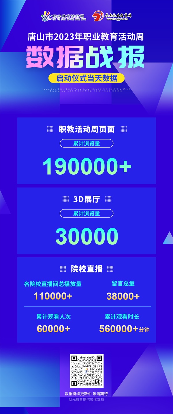 截止發(fā)稿前,唐山市2023年職業(yè)教育活動(dòng)周校園活動(dòng)周頁面累計(jì)瀏覽突破19萬,3D展廳累計(jì)瀏覽量突破3萬次,總觀看人數(shù)達(dá)到6萬多。