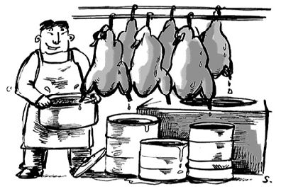 與菜市場不同的是,無錫市大超市的“烤鴨油”去向要規(guī)范得多。下午2時左右,記者來到位于陽光廣場的沃爾瑪超市的熟食品柜臺。當(dāng)問起“烤鴨油”的去向時,一位女性工作人員指著旁邊的兩只塑料桶說,“烤鴨油”剛剛被運走。她表示,超市與一家企業(yè)簽訂了收購合同,專門把“烤鴨油”交給該企業(yè)處理,據(jù)說是加工成化工產(chǎn)品。在位于清揚路上的家樂福超市,一位工作人員表示,“烤鴨油”和地溝油一樣不能吃,每天都有專門企業(yè)的人來收購“烤鴨油”,用作制造工業(yè)原料。