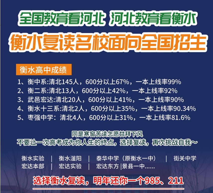 復(fù)讀不可怕,可怕的是你沒有重新來一次的決心,復(fù)讀也并沒有想象的那么困難,你想想,花開之日,便是你重回之時(shí)。一起努力一起進(jìn)步一起攜手拼搏,做更好的自己吧。歡迎撥打屏幕下方咨詢熱線了解更多衡水名校復(fù)讀詳情!