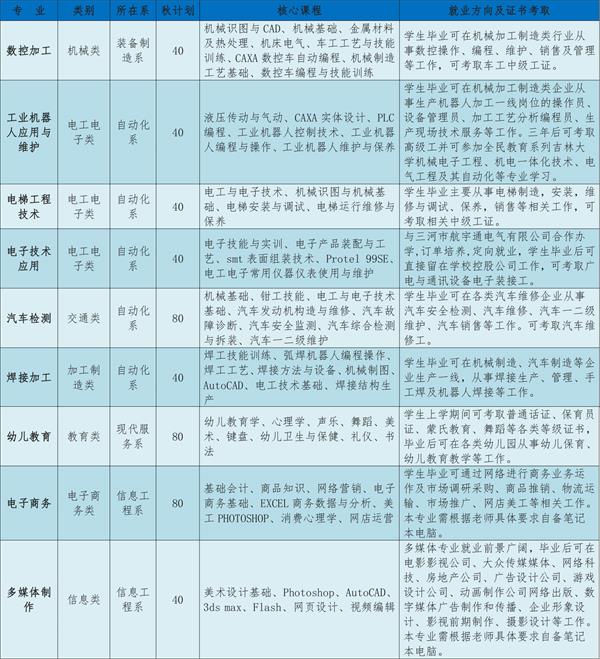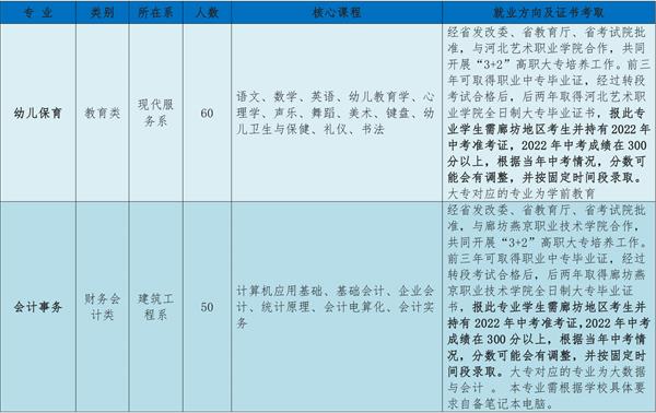 報(bào)名須知: 1.招生對(duì)象:在廊坊市內(nèi)參加中考的應(yīng)屆初中畢業(yè)生,當(dāng)年中考成績?cè)?00分以上;2.報(bào)3+2大專班的學(xué)生報(bào)名時(shí)必須提供當(dāng)年準(zhǔn)考證原件、復(fù)印件、中考成績截圖。