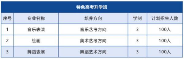 學(xué)校在突出藝術(shù)專業(yè)教育的同時(shí),不斷提高文化課的教學(xué)質(zhì)量,力求每一屆的畢業(yè)生在參加全國普通高考本科錄取率高達(dá)95%以上,還可以參加全國藝考,考省內(nèi)外等藝術(shù)學(xué)校,如:廣州美術(shù)學(xué)院、 天津美術(shù)學(xué)院 、四川美術(shù)學(xué)院 、湖北美術(shù)學(xué)院、 西安美術(shù)學(xué)院、 南京藝術(shù)學(xué)院 、廣西藝術(shù)學(xué)院 、云南藝術(shù)學(xué)院、 新疆藝術(shù)學(xué)院 、景德鎮(zhèn)陶瓷學(xué)院 、解放軍藝術(shù)學(xué)院等。