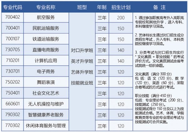 2023年對口升學班計劃招收500人(詳見當年招生計劃),最低錄取中考分數(shù)線不低于400分。報考對口升學班的學生根據(jù)興趣可填報學校相關專業(yè)志愿。